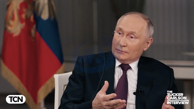 Pictures MUST credit: Tucker Carlson Network US journalist Tucker Carlson interviews Russian president Vladimir Putin at the Kremlin in Moscow on February 6, 2024 with the interview broadcast on February 8. Picture supplied by JLPPA