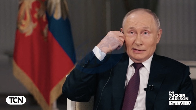 Pictures MUST credit: Tucker Carlson Network US journalist Tucker Carlson interviews Russian president Vladimir Putin at the Kremlin in Moscow on February 6, 2024 with the interview broadcast on February 8. Picture supplied by JLPPA