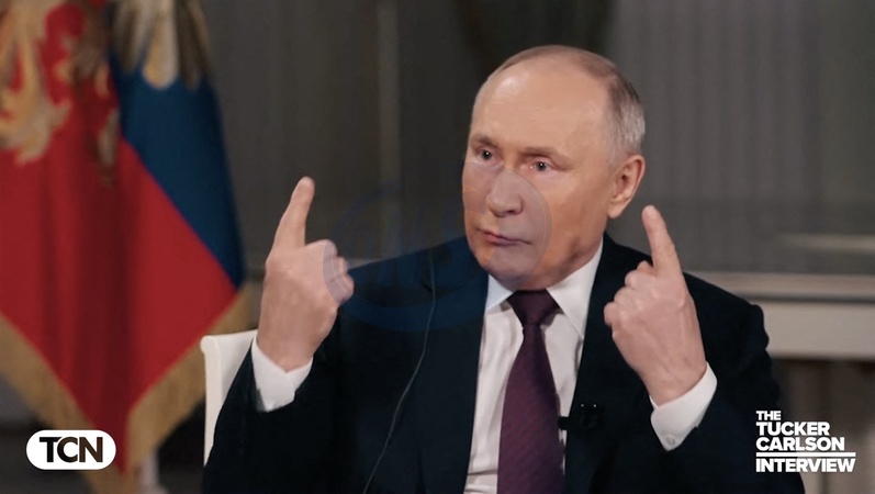 Pictures MUST credit: Tucker Carlson Network US journalist Tucker Carlson interviews Russian president Vladimir Putin at the Kremlin in Moscow on February 6, 2024 with the interview broadcast on February 8. Picture supplied by JLPPA