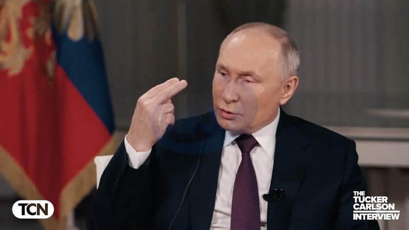 Pictures MUST credit: Tucker Carlson Network US journalist Tucker Carlson interviews Russian president Vladimir Putin at the Kremlin in Moscow on February 6, 2024 with the interview broadcast on February 8. Picture supplied by JLPPA