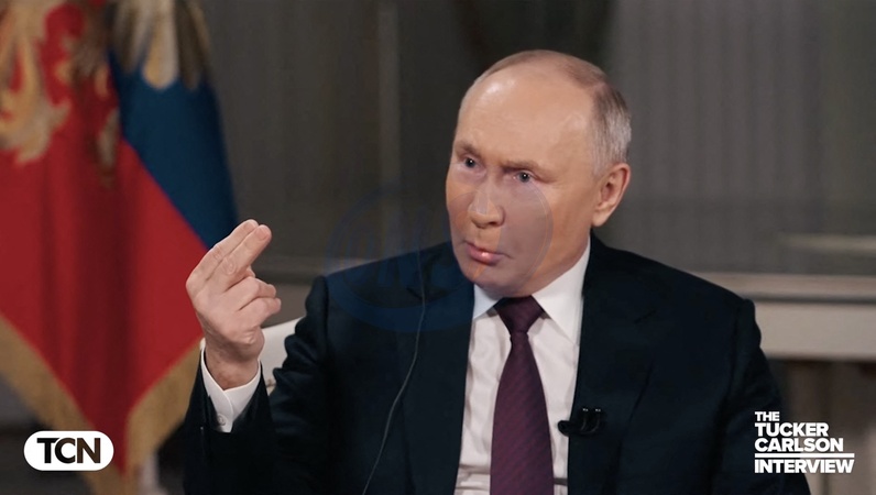 Pictures MUST credit: Tucker Carlson Network US journalist Tucker Carlson interviews Russian president Vladimir Putin at the Kremlin in Moscow on February 6, 2024 with the interview broadcast on February 8. Picture supplied by JLPPA