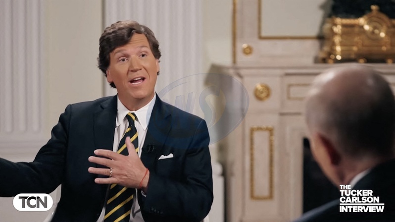Pictures MUST credit: Tucker Carlson Network US journalist Tucker Carlson interviews Russian president Vladimir Putin at the Kremlin in Moscow on February 6, 2024 with the interview broadcast on February 8. Picture supplied by JLPPA