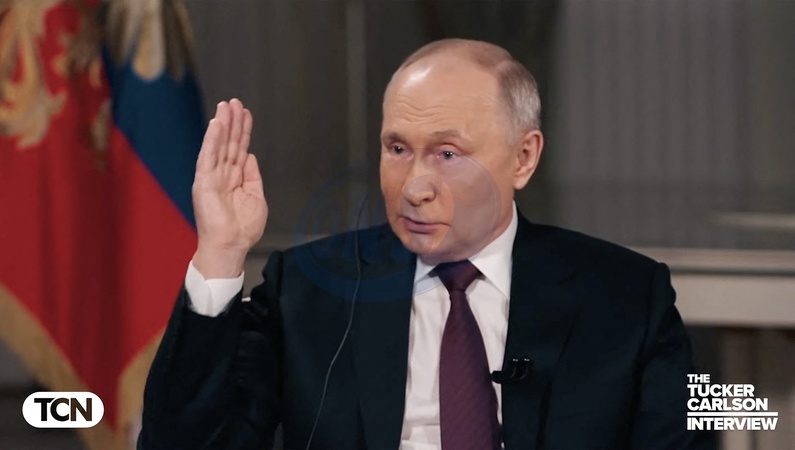 Pictures MUST credit: Tucker Carlson Network US journalist Tucker Carlson interviews Russian president Vladimir Putin at the Kremlin in Moscow on February 6, 2024 with the interview broadcast on February 8. Picture supplied by JLPPA