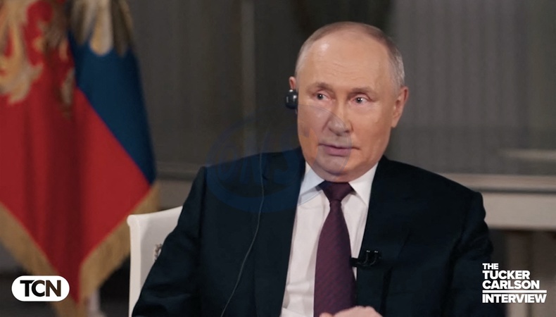 Pictures MUST credit: Tucker Carlson Network US journalist Tucker Carlson interviews Russian president Vladimir Putin at the Kremlin in Moscow on February 6, 2024 with the interview broadcast on February 8. Picture supplied by JLPPA