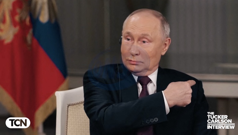 Pictures MUST credit: Tucker Carlson Network US journalist Tucker Carlson interviews Russian president Vladimir Putin at the Kremlin in Moscow on February 6, 2024 with the interview broadcast on February 8. Picture supplied by JLPPA