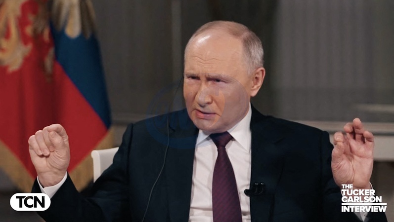 Pictures MUST credit: Tucker Carlson Network US journalist Tucker Carlson interviews Russian president Vladimir Putin at the Kremlin in Moscow on February 6, 2024 with the interview broadcast on February 8. Picture supplied by JLPPA