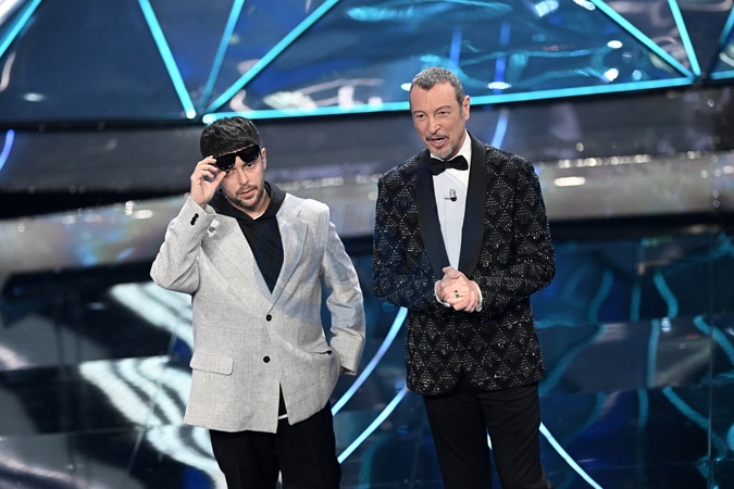 Amadeus, Gazzelle during the day 5 of 74th Sanremo Music Festival 2024, Italy - 10 Feb 2024, Credit:Maria Laura Antonelli / Avalon