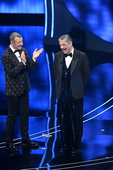 Amadeus, Fiorello during the day 5 of 74th Sanremo Music Festival 2024, Italy - 10 Feb 2024, Credit:Maria Laura Antonelli / Avalon