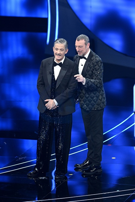 Amadeus, Fiorello during the day 5 of 74th Sanremo Music Festival 2024, Italy - 10 Feb 2024, Credit:Maria Laura Antonelli / Avalon