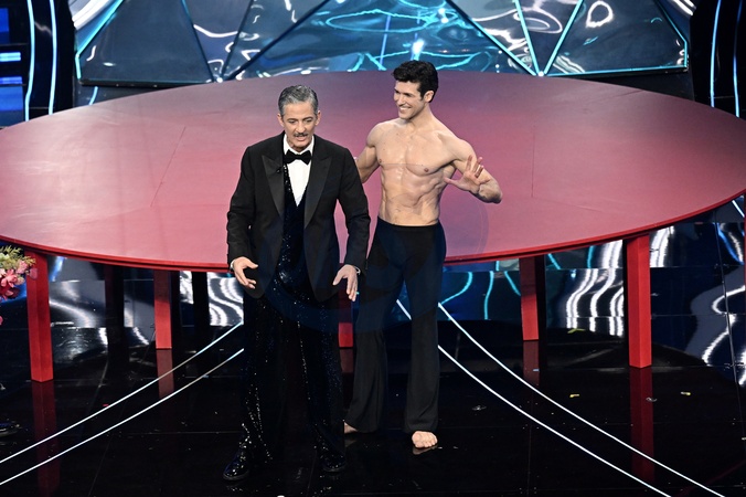 Roberto Bolle, Fiorello during the day 5 of 74th Sanremo Music Festival 2024, Italy - 10 Feb 2024, Credit:Maria Laura Antonelli / Avalon