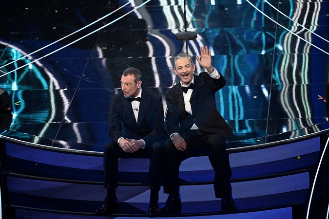 Fiorelllo, Amadeus during the day 5 of 74th Sanremo Music Festival 2024, Italy - 10 Feb 2024, Credit:Maria Laura Antonelli / Avalon
