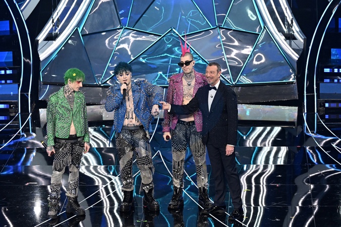 La Sad, Amadeus during the day 5 of 74th Sanremo Music Festival 2024, Italy - 10 Feb 2024, Credit:Maria Laura Antonelli / Avalon