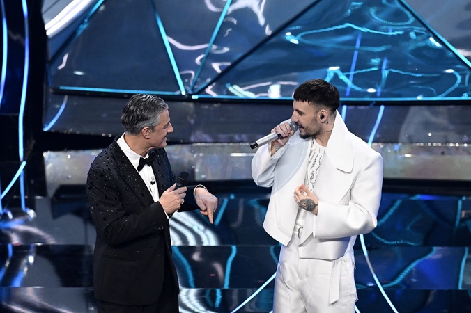 Mr Rain, Fiorello during the day 5 of 74th Sanremo Music Festival 2024, Italy - 10 Feb 2024, Credit:Maria Laura Antonelli / Avalon