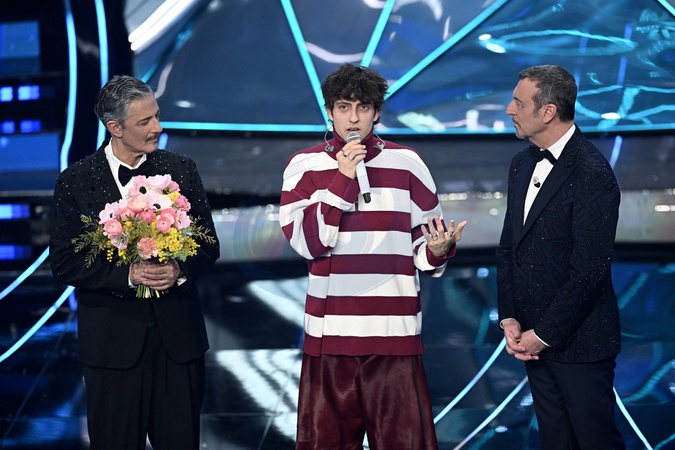 Fiorello, Amadeus, Sangiovanni during the day 5 of 74th Sanremo Music Festival 2024, Italy - 10 Feb 2024, Credit:Maria Laura Antonelli / Avalon