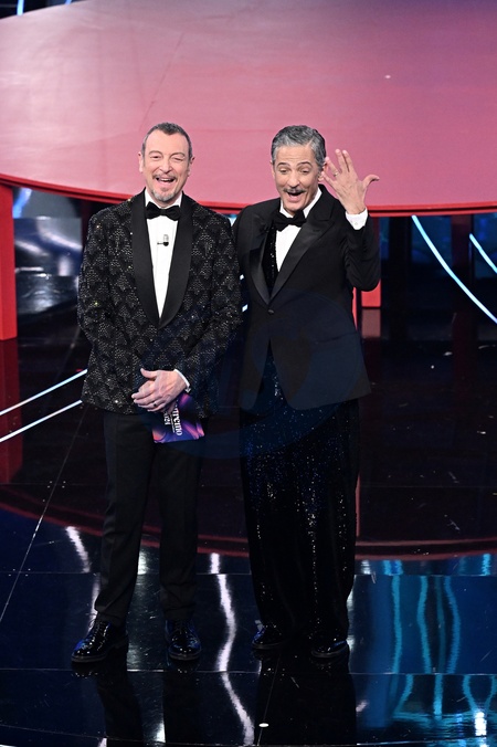 Amadeus, Fiorello during the day 5 of 74th Sanremo Music Festival 2024, Italy - 10 Feb 2024, Credit:Maria Laura Antonelli / Avalon