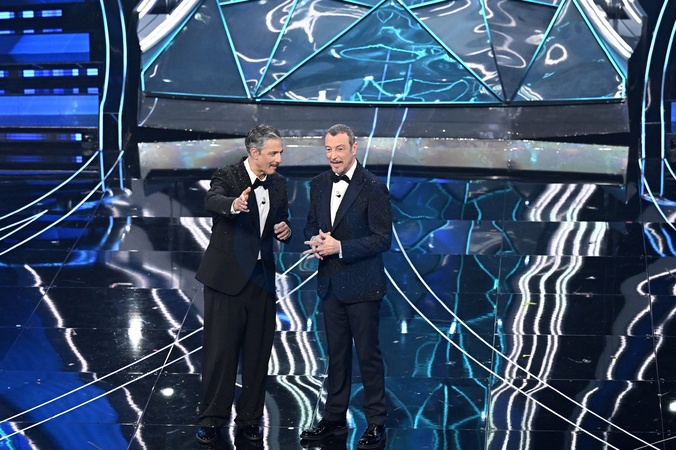 Fiorello, Amadeus during the day 5 of 74th Sanremo Music Festival 2024, Italy - 10 Feb 2024, Credit:Maria Laura Antonelli / Avalon