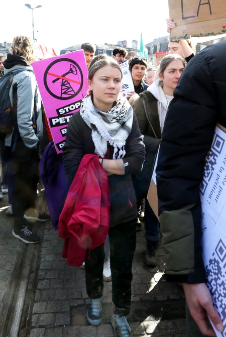Greta Thunberg bierze udział w demonstracji przeciwko projektowi wiercenia ośmiu szybów naftowych w lesie La Teste w dorzeczu Arcachon