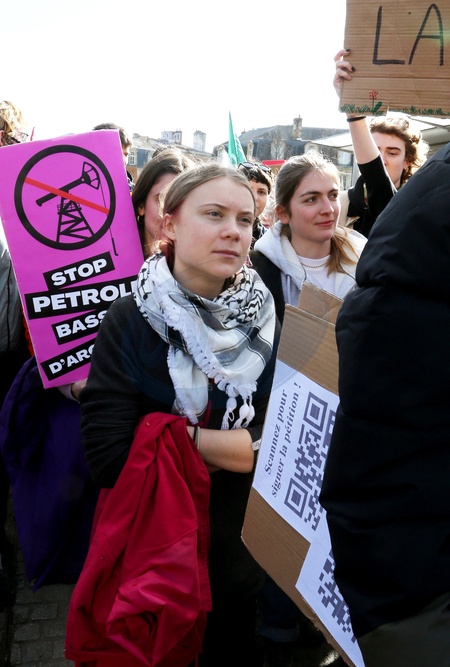 Greta Thunberg bierze udział w demonstracji przeciwko projektowi wiercenia ośmiu szybów naftowych w lesie La Teste w dorzeczu Arcachon