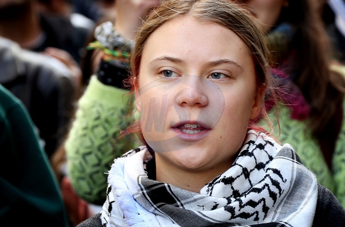 Greta Thunberg, symbol mondial de la lutte contre le rechauffement climatique participe à une manifestation contre un projet de forage de huit puits de petrole dans la forêt de La Teste sur le bassin d'Arcachon, le 11 Fevrier 2024 à Bordeaux. Patrick Bernard/ Bestimage Greta Thunberg, world symbol of the fight against global warming, takes part in a demonstration against a project to drill eight oil wells in the La Teste forest in the Arcachon basin, on February 11, 2024 in Bordeaux