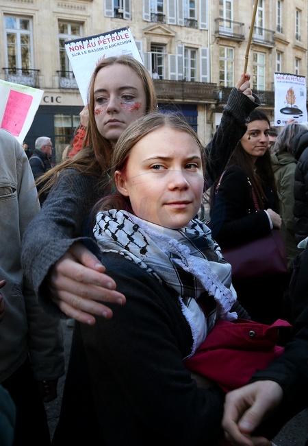 Greta Thunberg bierze udział w demonstracji przeciwko projektowi wiercenia ośmiu szybów naftowych w lesie La Teste w dorzeczu Arcachon