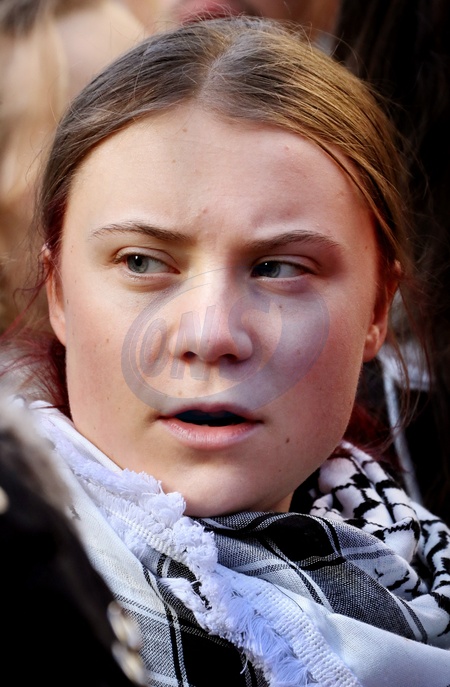Greta Thunberg, symbol mondial de la lutte contre le rechauffement climatique participe à une manifestation contre un projet de forage de huit puits de petrole dans la forêt de La Teste sur le bassin d'Arcachon, le 11 Fevrier 2024 à Bordeaux. Patrick Bernard/ Bestimage Greta Thunberg, world symbol of the fight against global warming, takes part in a demonstration against a project to drill eight oil wells in the La Teste forest in the Arcachon basin, on February 11, 2024 in Bordeaux