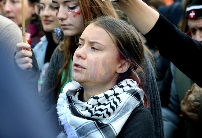 Greta Thunberg, symbol mondial de la lutte contre le rechauffement climatique participe à une manifestation contre un projet de forage de huit puits de petrole dans la forêt de La Teste sur le bassin d'Arcachon, le 11 Fevrier 2024 à Bordeaux. Patrick Bernard/ Bestimage Greta Thunberg, world symbol of the fight against global warming, takes part in a demonstration against a project to drill eight oil wells in the La Teste forest in the Arcachon basin, on February 11, 2024 in Bordeaux