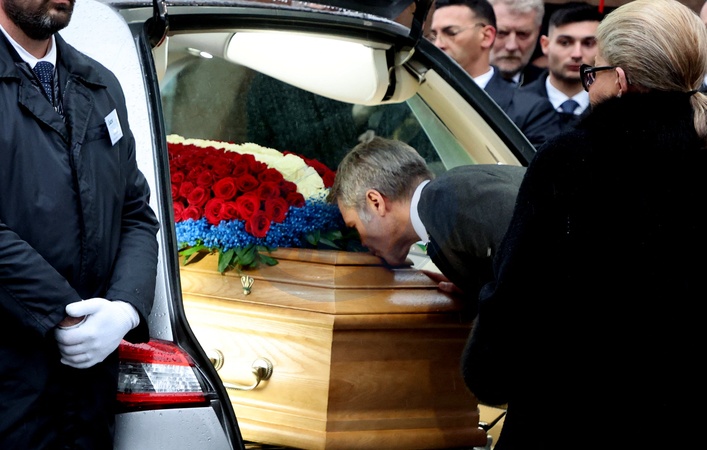 Le prince Emmanuel-Philibert de Savoie et sa mère Marina Ricolfi-Doria - Sorties des funérailles du prince Victor Emmanuel de Savoie en la cathédrale Saint-Jean-Baptiste de Turin le 10 février 2024. © Dominique Jacovides/Bestimage Exits from the funeral of Prince Victor Emmanuel of Savoy in the Cathedral of Saint John the Baptist in Turin on February 10, 2024.