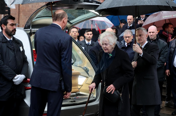 La princesse Maria Pia de Savoie - Sorties des funérailles du prince Victor Emmanuel de Savoie en la cathédrale Saint-Jean-Baptiste de Turin le 10 février 2024. © Dominique Jacovides/Bestimage Exits from the funeral of Prince Victor Emmanuel of Savoy in the Cathedral of Saint John the Baptist in Turin on February 10, 2024.