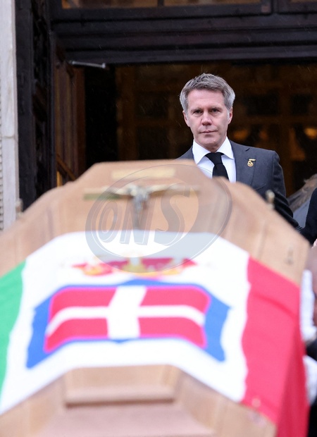 Le prince Emmanuel-Philibert de Savoie - Sorties des funérailles du prince Victor Emmanuel de Savoie en la cathédrale Saint-Jean-Baptiste de Turin le 10 février 2024. © Dominique Jacovides/Bestimage Exits from the funeral of Prince Victor Emmanuel of Savoy in the Cathedral of Saint John the Baptist in Turin on February 10, 2024.