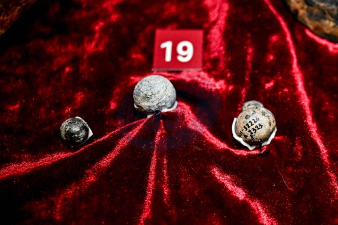 ZAPORIZHZHIA, UKRAINE - FEBRUARY 09, 2024 - Archaeological finds discovered after the shallowing of the Kakhovka Reservoir as a result of the dam explosion by Russian troops, exhibited at the museum of the Khortytsia National Reserve, Zaporizhzhia, south-eastern Ukraine., Credit:Dmytro Smolienko / Avalon