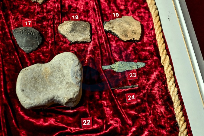 ZAPORIZHZHIA, UKRAINE - FEBRUARY 09, 2024 - Archaeological finds discovered after the shallowing of the Kakhovka Reservoir as a result of the dam explosion by Russian troops, exhibited at the museum of the Khortytsia National Reserve, Zaporizhzhia, south-eastern Ukraine., Credit:Dmytro Smolienko / Avalon