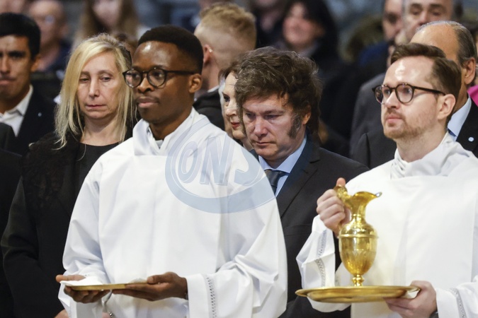 Argentina's President Javier Milei, flanked by his sister Karina Elizabeth Milei, attends the Holy Mass and canonization of Blessed Maria Antonia of Saint Joseph de Paz y Figueroa, Credit:Riccardo De Luca / Avalon