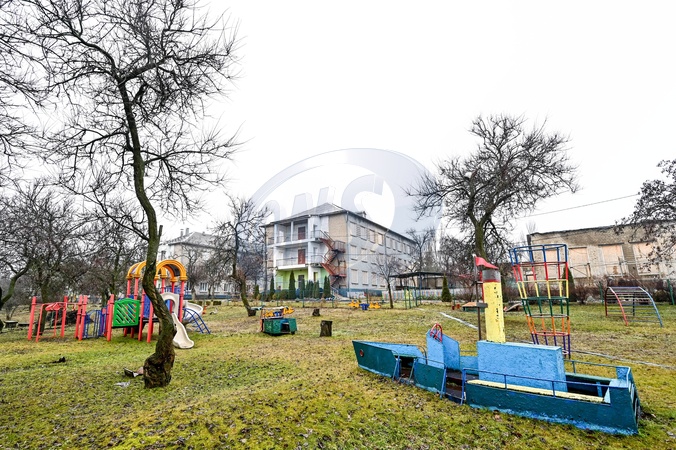 ZAPORIZHZHIA, UKRAINE - FEBRUARY 9, 2024 - A playground is seen on the premises of the Khortytsia National Academy damaged in Russian shelling, Zaporizhzhia, southeastern Ukraine., Credit:Dmytro Smolienko / Avalon