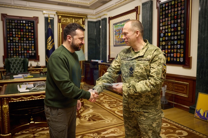 Le président ukrainien Volodymyr Zelensky rencontre les dirigeants militaires ukrainiens au palais présidentiel de Mariinsky à Kiev