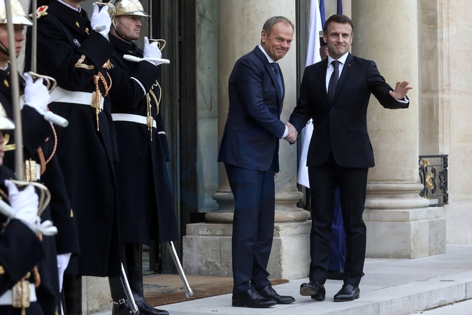 prezydent Emmanuel Macron i premier Donald Tusk w pałacu prezydenckim w Paryzu