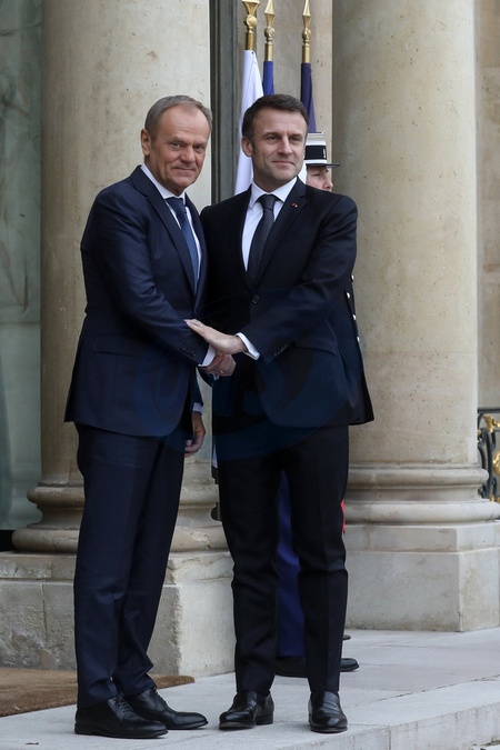 Le président Emmanuel Macron recoit Donald Tusk, Président du Conseil des ministres de Pologne pour un déjeuner de travail au palais de l'Elysée à Paris
