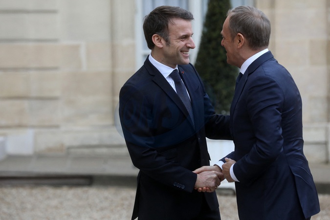 prezydent Emmanuel Macron i premier Donald Tusk w pałacu prezydenckim w Paryzu