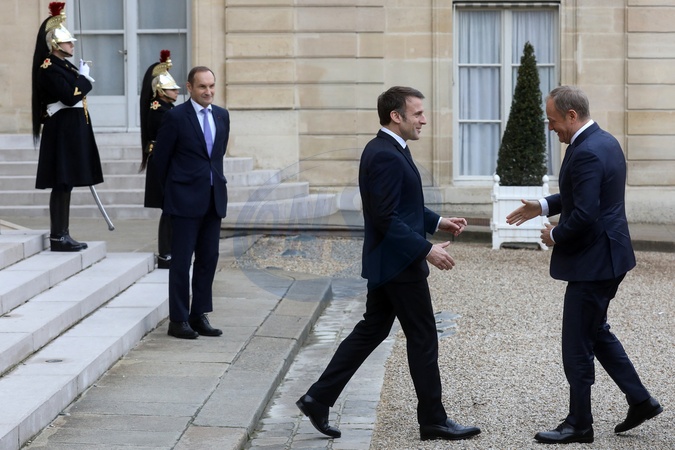 Le président Emmanuel Macron recoit Donald Tusk, Président du Conseil des ministres de Pologne pour un déjeuner de travail au palais de l'Elysée à Paris
