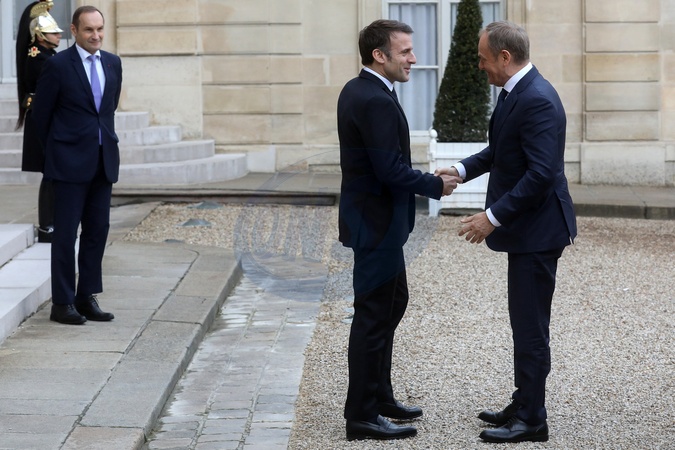 Le président Emmanuel Macron recoit Donald Tusk, Président du Conseil des ministres de Pologne pour un déjeuner de travail au palais de l'Elysée à Paris