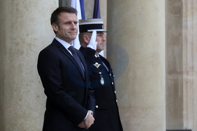 Le président Emmanuel Macron recoit Donald Tusk, Président du Conseil des ministres de Pologne pour un déjeuner de travail au palais de l'Elysée à Paris