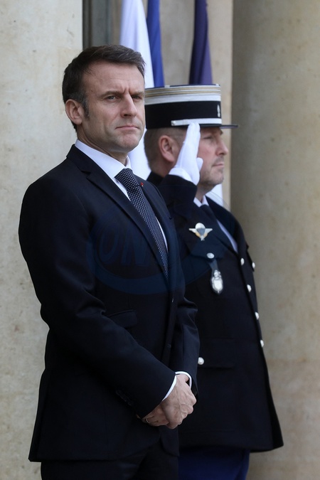 Le président Emmanuel Macron recoit Donald Tusk, Président du Conseil des ministres de Pologne pour un déjeuner de travail au palais de l'Elysée à Paris