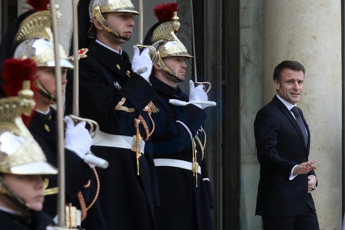 Le président Emmanuel Macron recoit Donald Tusk, Président du Conseil des ministres de Pologne pour un déjeuner de travail au palais de l'Elysée à Paris
