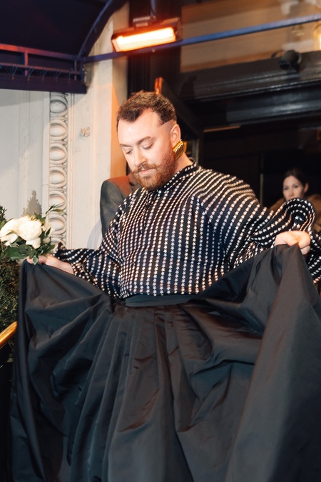 Sam Smith à la sortie du défilé de son compagnon Christian Cowan Automne/Hiver 2024-2025 lors de la Fashion Week de New York (NYCFW), à New York City, New York, Etats-Unis, le 11 février 2024. © Tiziano Da Silva/Bestimage Celebs is seen arriving at the Christian Cowan F/W24 Fashion Show on February 11, 2024 in New York Cit