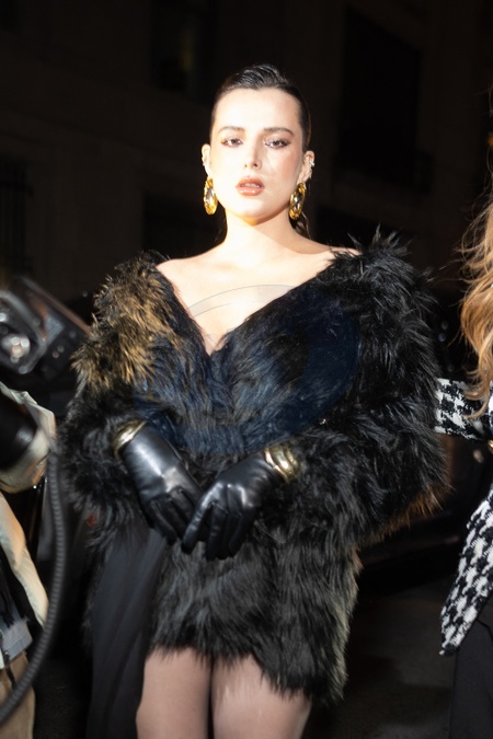 Bella Thorne arrive au défilé Christian Cowan Automne/Hiver 2024-2025 lors de la Fashion Week de New York (NYCFW), à New York City, New York, Etats-Unis, le 11 février 2024. © Tiziano Da Silva/Bestimage Celebs is seen arriving at the Christian Cowan F/W24 Fashion Show on February 11, 2024 in New York City.