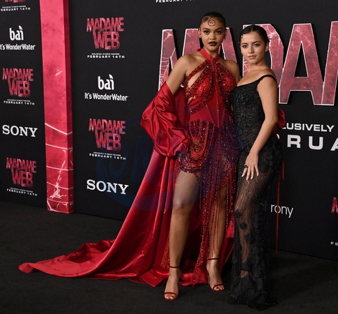 Celeste O'Connor and Isabela Merced arriving at the "Madame Web” world premiere held at the Regency Village Theatre on February 12, 2024 in Westwood, CA.© Tammie Arroyo / AFF-USA.com