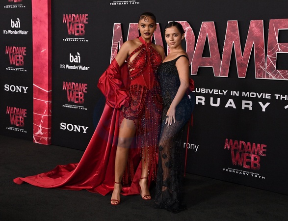 Celeste O'Connor and Isabela Merced arriving at the "Madame Web” world premiere held at the Regency Village Theatre on February 12, 2024 in Westwood, CA.© Tammie Arroyo / AFF-USA.com