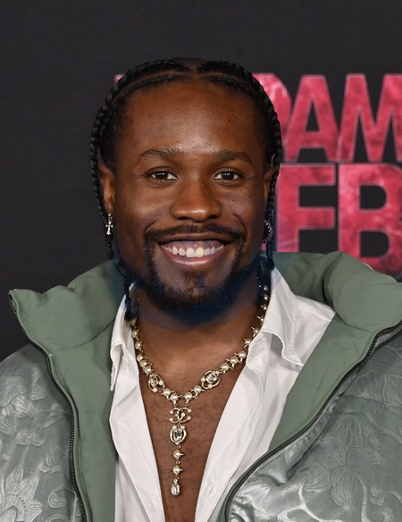 Shameik Moore arriving at the "Madame Web” world premiere held at the Regency Village Theatre on February 12, 2024 in Westwood, CA.© Tammie Arroyo / AFF-USA.com