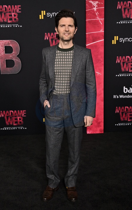 Adam Scott arriving at the "Madame Web” world premiere held at the Regency Village Theatre on February 12, 2024 in Westwood, CA.© Tammie Arroyo / AFF-USA.com