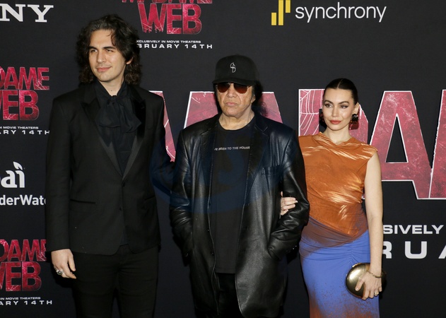 Nick Simmons, Gene Simmons and Sophie Simmons at the Los Angeles premiere of 'Madame Web' held at the Regency Village Theater in Westwood, USA on February 12, 2024., Credit:Lumeimages.com / Avalon
