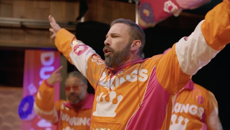 Jennifer Lopez, Ben Affleck, Matt Damon i Tom Brady w reklamie Dunkin' Super Bowl